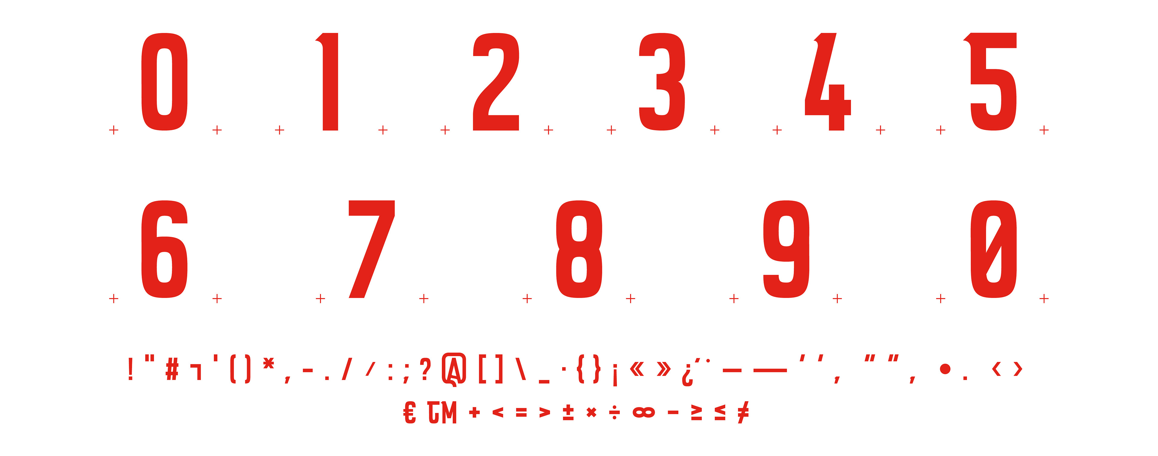 Throughout the typeface the characters contain a small serif which mimics the calligraphic mark from traditional uncial script. The typeface takes elements from the constructivist typography by having one continuous large stroke width throughout each character.