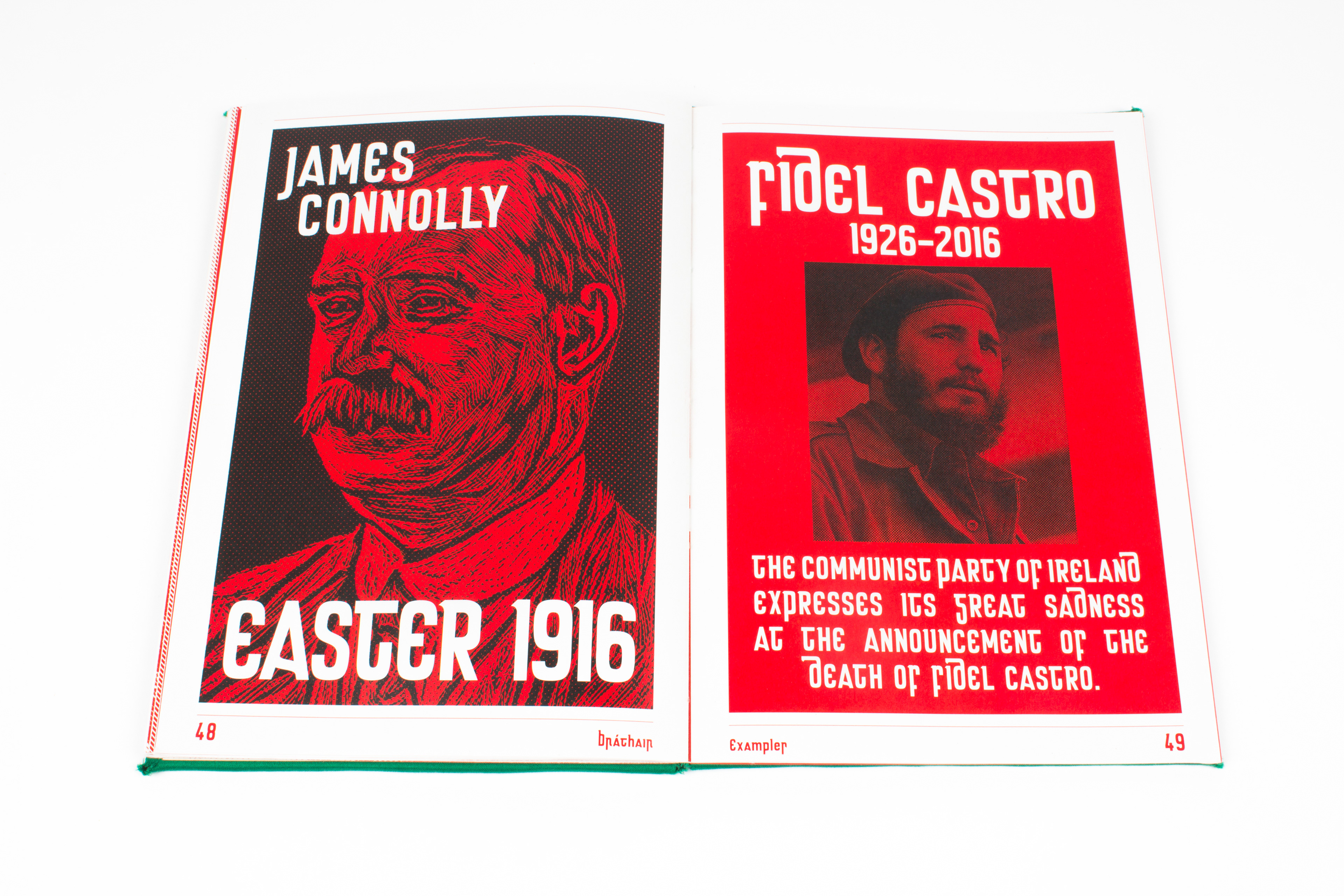 Bráthair is a typeface that combines the characteristics of An Cló Gaelach (Gaelic type) with Slovak typography used on street signs, billboards and shopfronts during the Socialist period, particularly during the period of Normalisation from the 1960—90’s.
